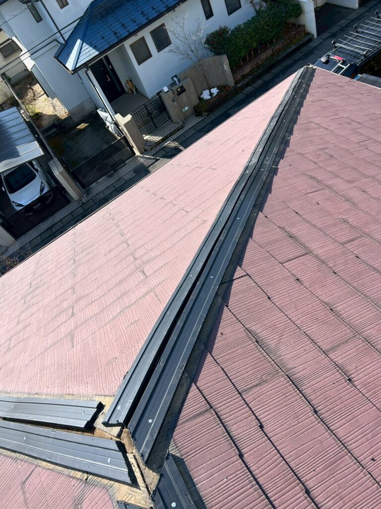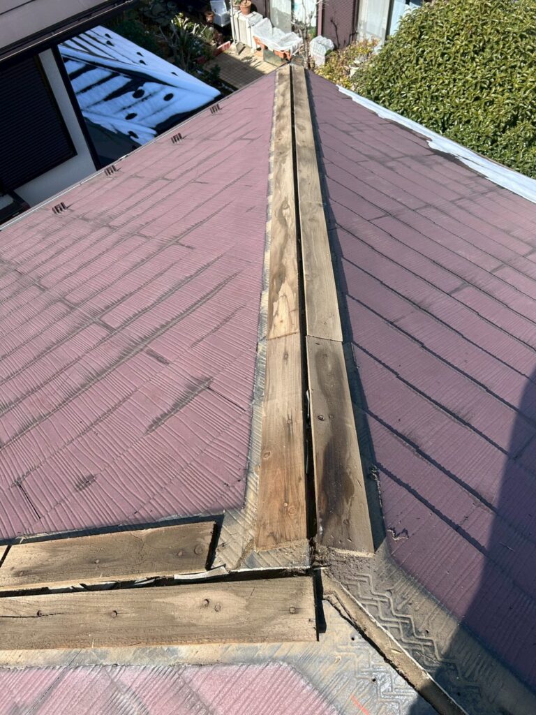 そのため今回は、棟板金を一度撤去し、新しい棟板金へ交換する工事を行いました。